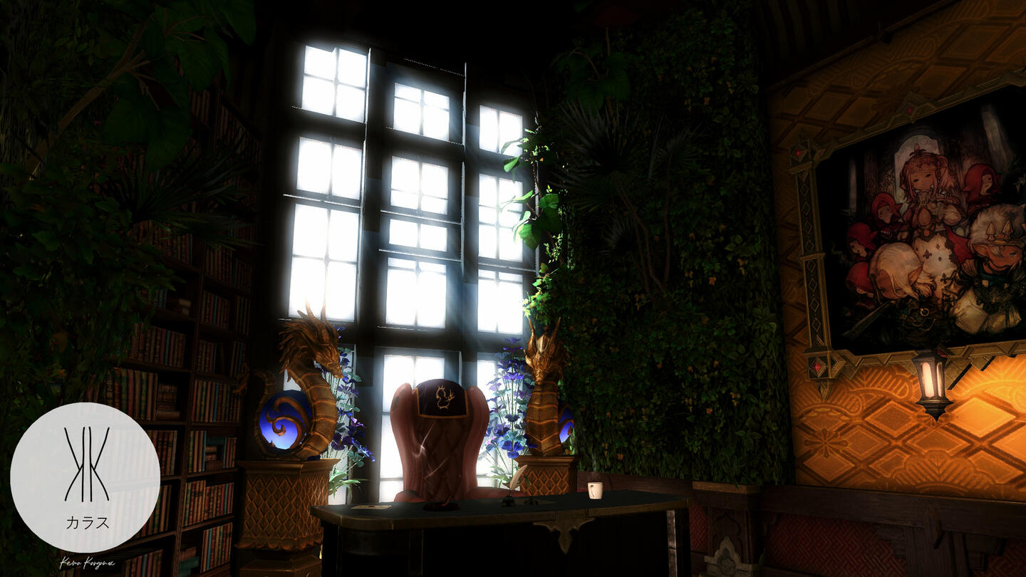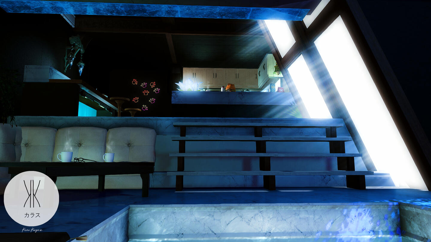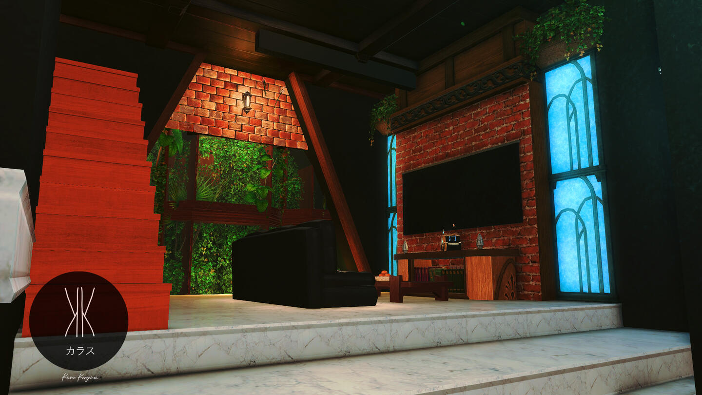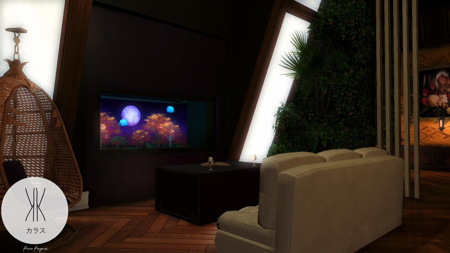 A very cozy, but also elegant design for a person who loves Crystarium and G'raha Tia. Ground floor made as a hangout place - living room and on the right G'raha's office. Upper floor is more of a private place with bedroom connected to restroom, all in modern style~