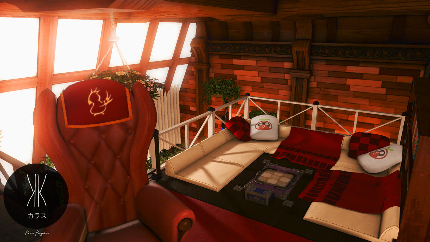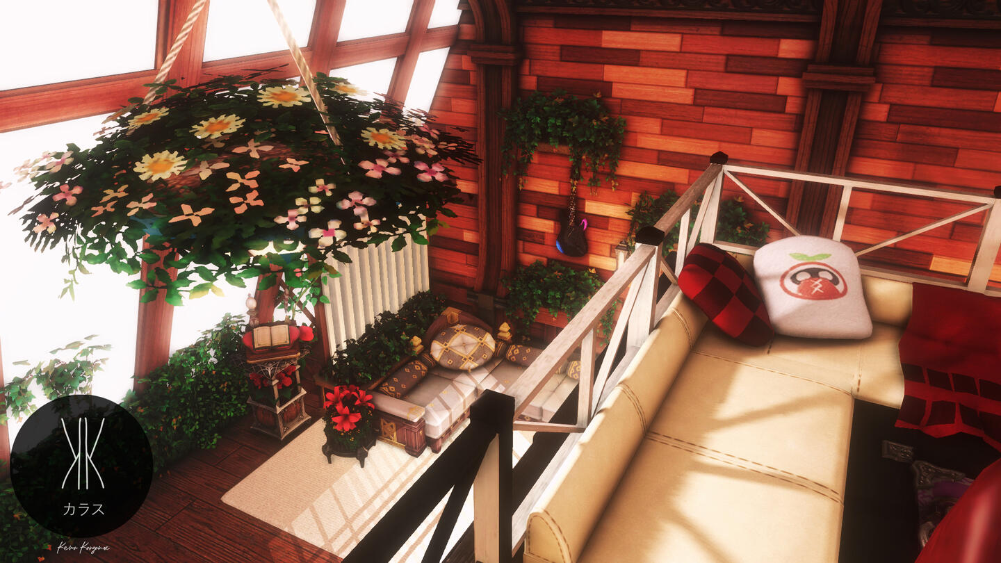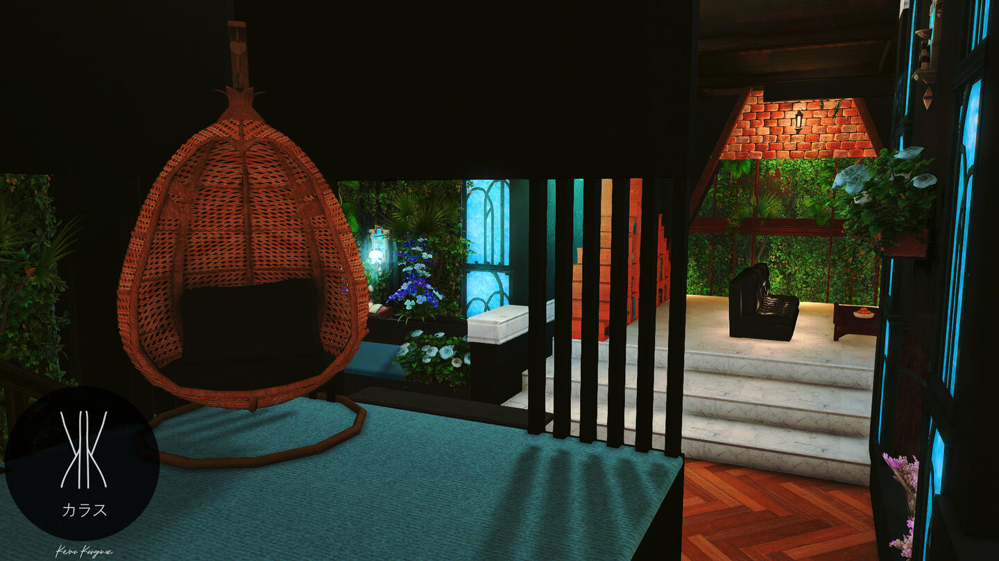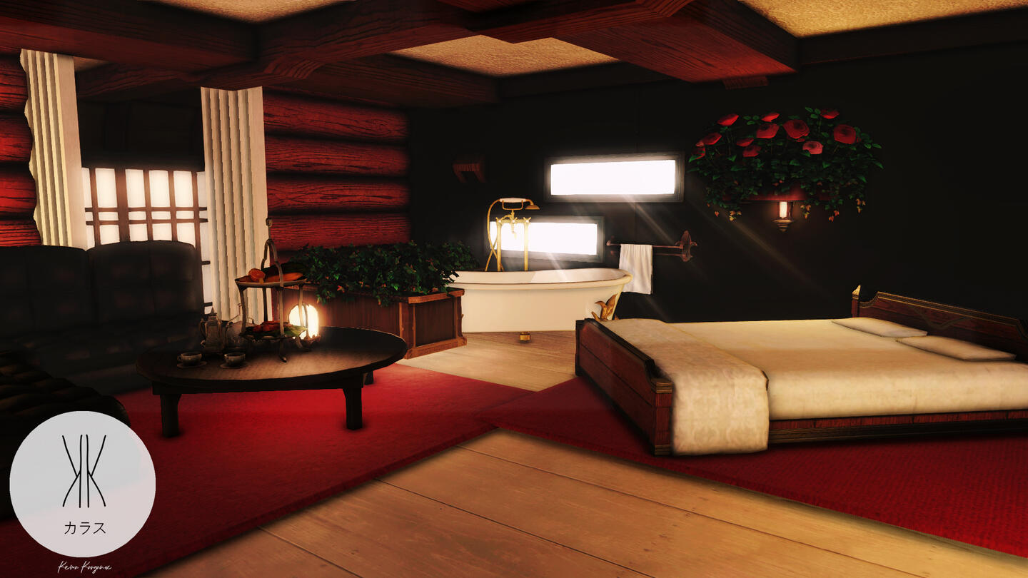 A very cozy, but also elegant design for a person who loves Crystarium and G'raha Tia. Ground floor made as a hangout place - living room and on the right G'raha's office. Upper floor is more of a private place with bedroom connected to restroom, all in modern style~